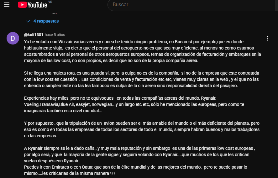 Opiniones de Wizz Air en Youtube